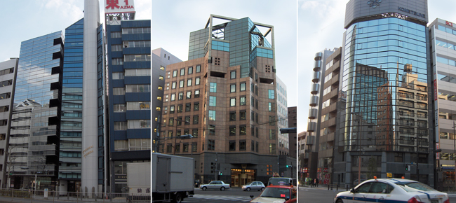 Tokyo is a very ancient city, and it has a lot of streets crossing at very sharp anglеs; so naturally it has lots of buildings with sharp corners, that I have never seen anywhere else / Токио очень древний город, и в нём много улиц, пересекающихся под острыми углами; естественно, там есть и много зданий с острыми углами, каких я никогда не видела |