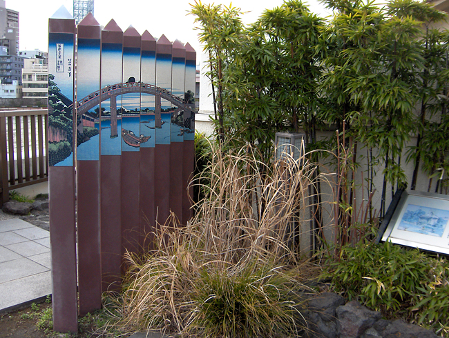 Did you recognize the image on the fence? It's by Hokusai himself. Why is it here? It's a favorite Basho's bridge. Everything is at its place. / Вы узнали картинку на заборчике? Сам Хокусаи, между прочим. А почему она здесь? А потому что это любимый мост Басё. Всё на своем месте. |