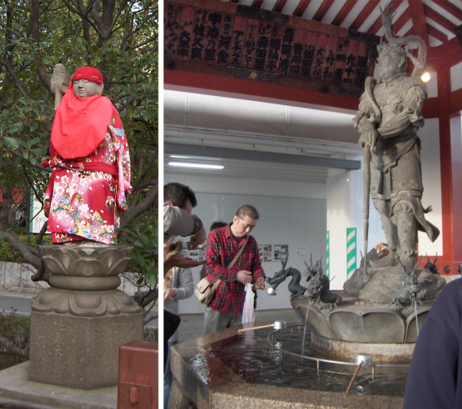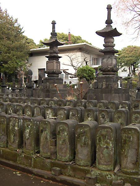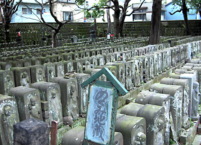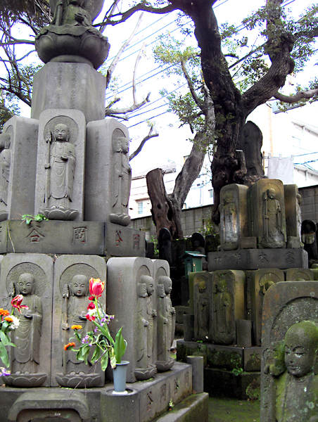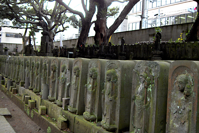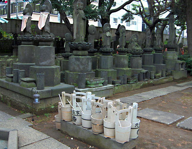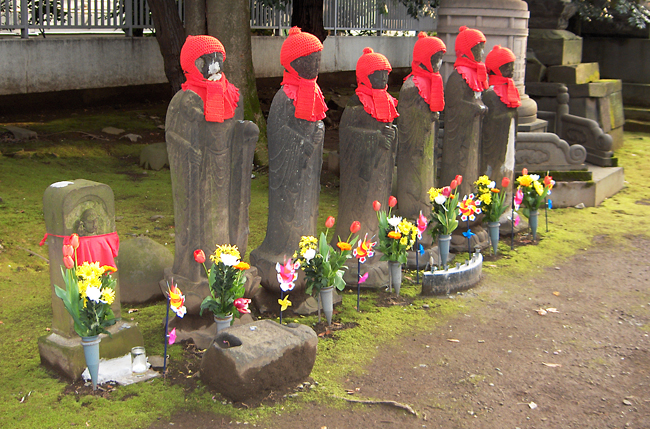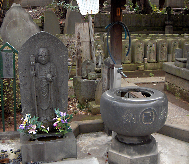 Kaneiji Temple was established in 1625 to protect Edo Castle, the Shogun's seat, from evil and from fire. It also has a few large bibbed jizo bodhisattva statues. Jomyoin Temple (see above) was once one of the 36 priests' residences of Kaneiji Temple, and only later became a temple in its own right. Храм Канеи был построен в 1625 для защиты замка Эдо, трона сёгуна, от зла и огня. В нём тоже есть несколько больших дзидзо-бодхисаттв. Дзёмёин (предыдущий храм) изначально был резиденцией одного из 36 священников храма Канеи, и только потом стал самостоятельным храмом. |