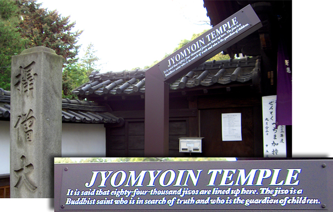 Jomyoin Temple is notable for having over 84,000 jizo (statues of the bodhisattva guardian of children) - row upon row of them - all in a multitude of depictions and states of repair. It leaves a very intimate and moving feeling. Hats and bibs symbolize childhood. |