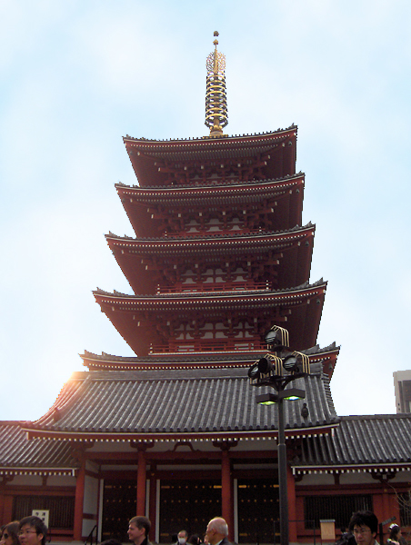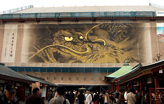 Sensoji (also known as Asakusa Kannon Temple) was built there for Kannon, the goddess of mercy, in 645, which makes it Tokyo's oldest temple. Храм Сенсо (ещё известен как Асакусский храм Каннон) был построен в честь Каннон, богини милосердия, в 645 г., что делает его самым древним храмом в Токио. |